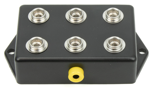 Bench Block wih 1 x 4mm banana plug and 6 x 10mm male stud connections
